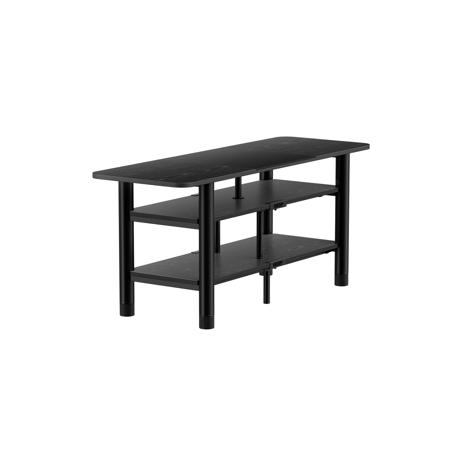 Small TV Stand with Black Metal Frame and Black Shelves