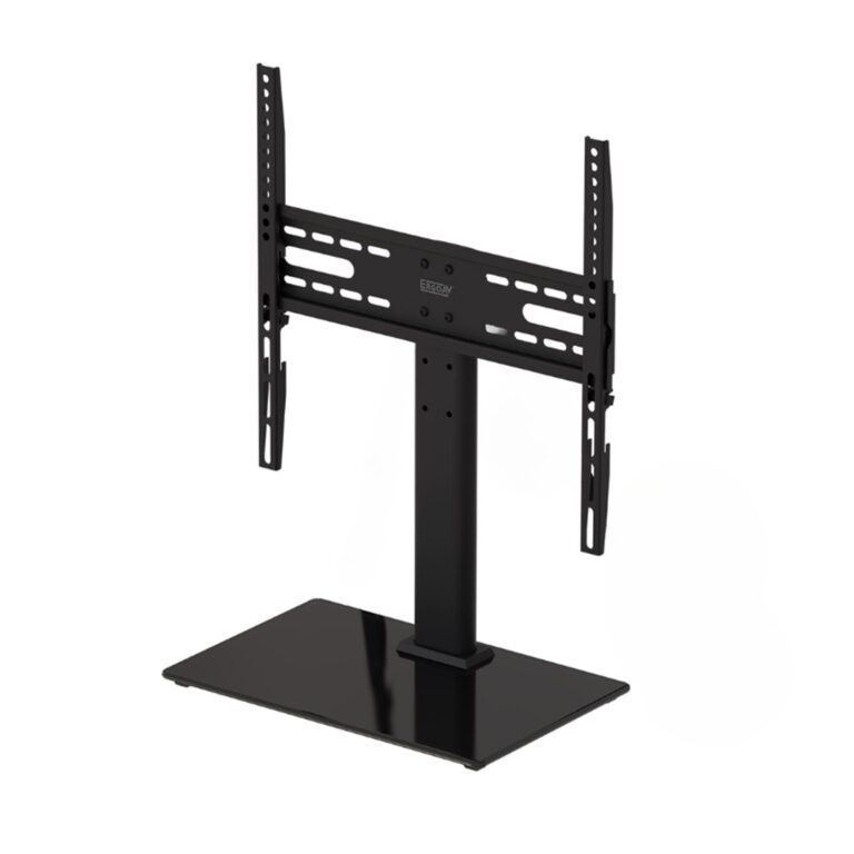 Tabletop TV stand with swivel for 43″ to 65″ TVs.