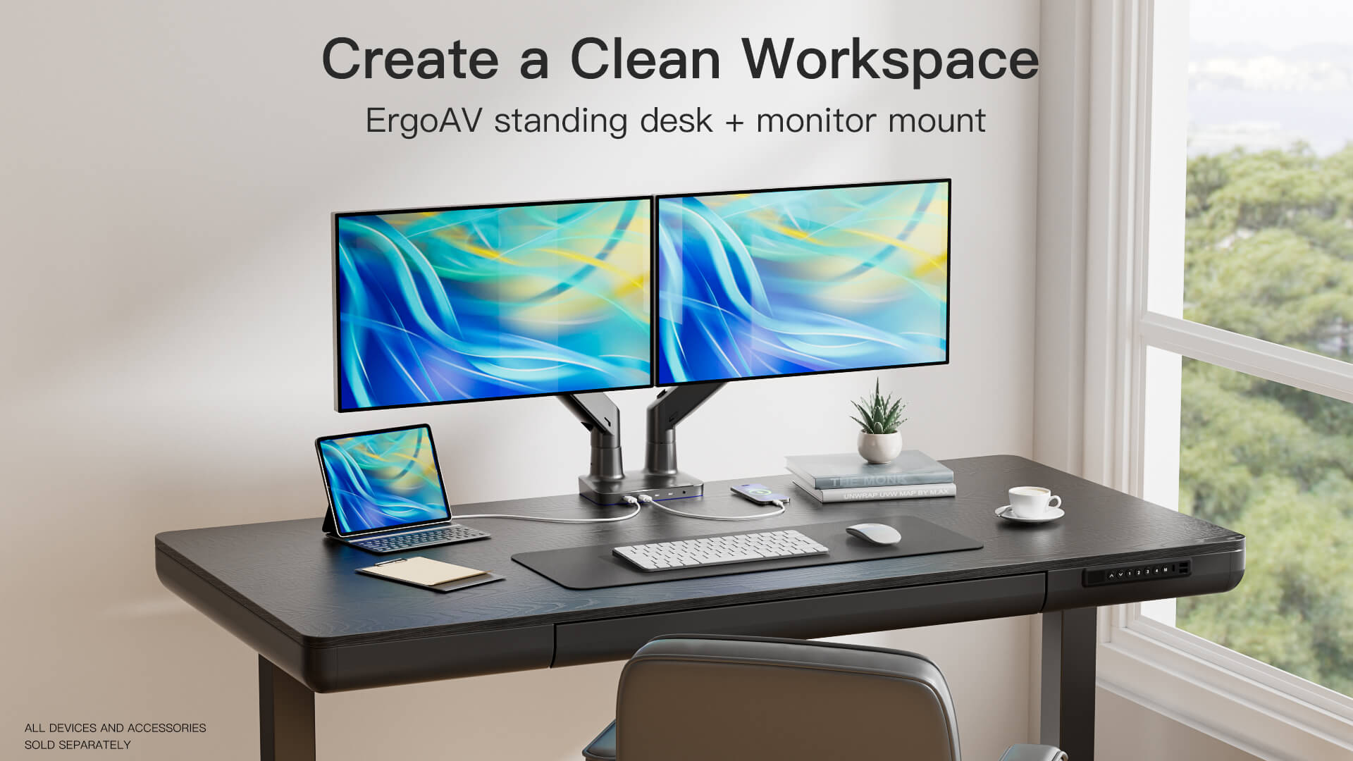 ErgoAV Height-Adjustable Executive Standing Desk with Black Desktop