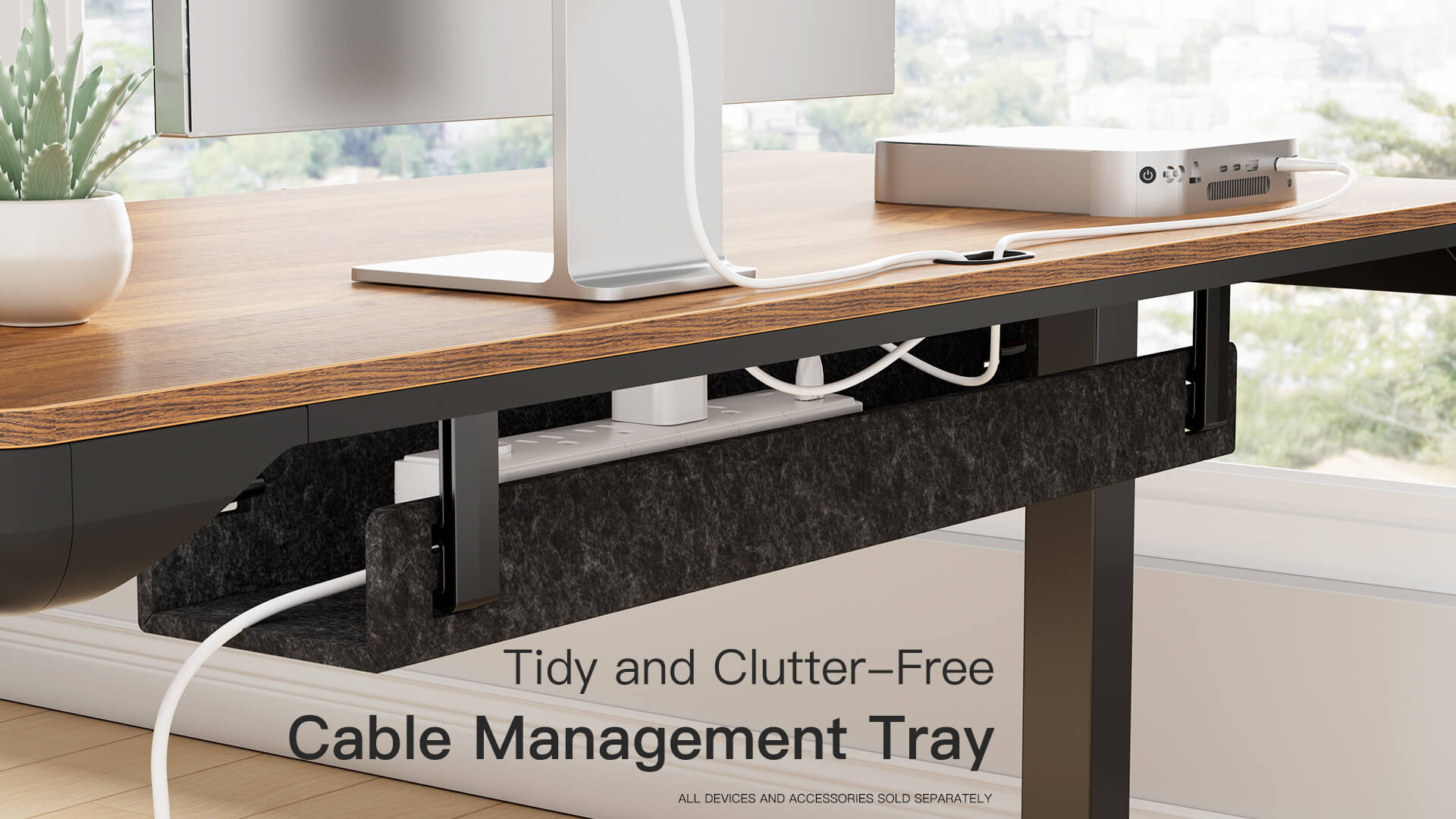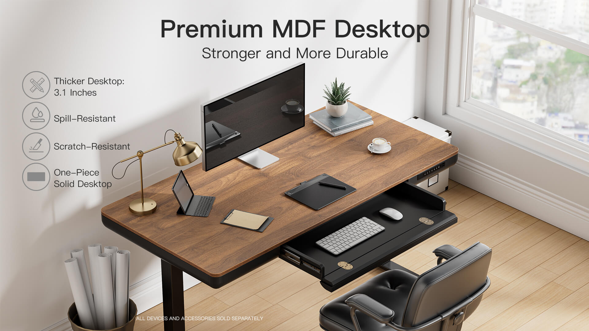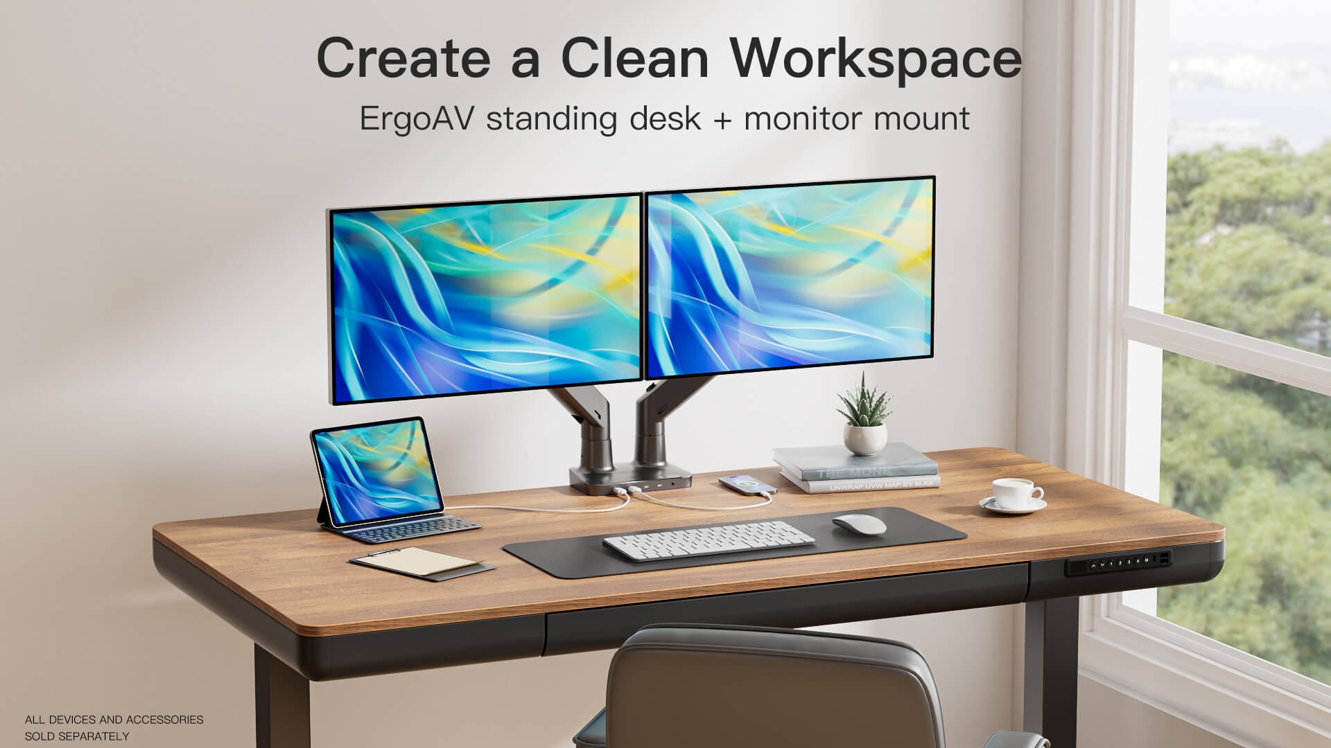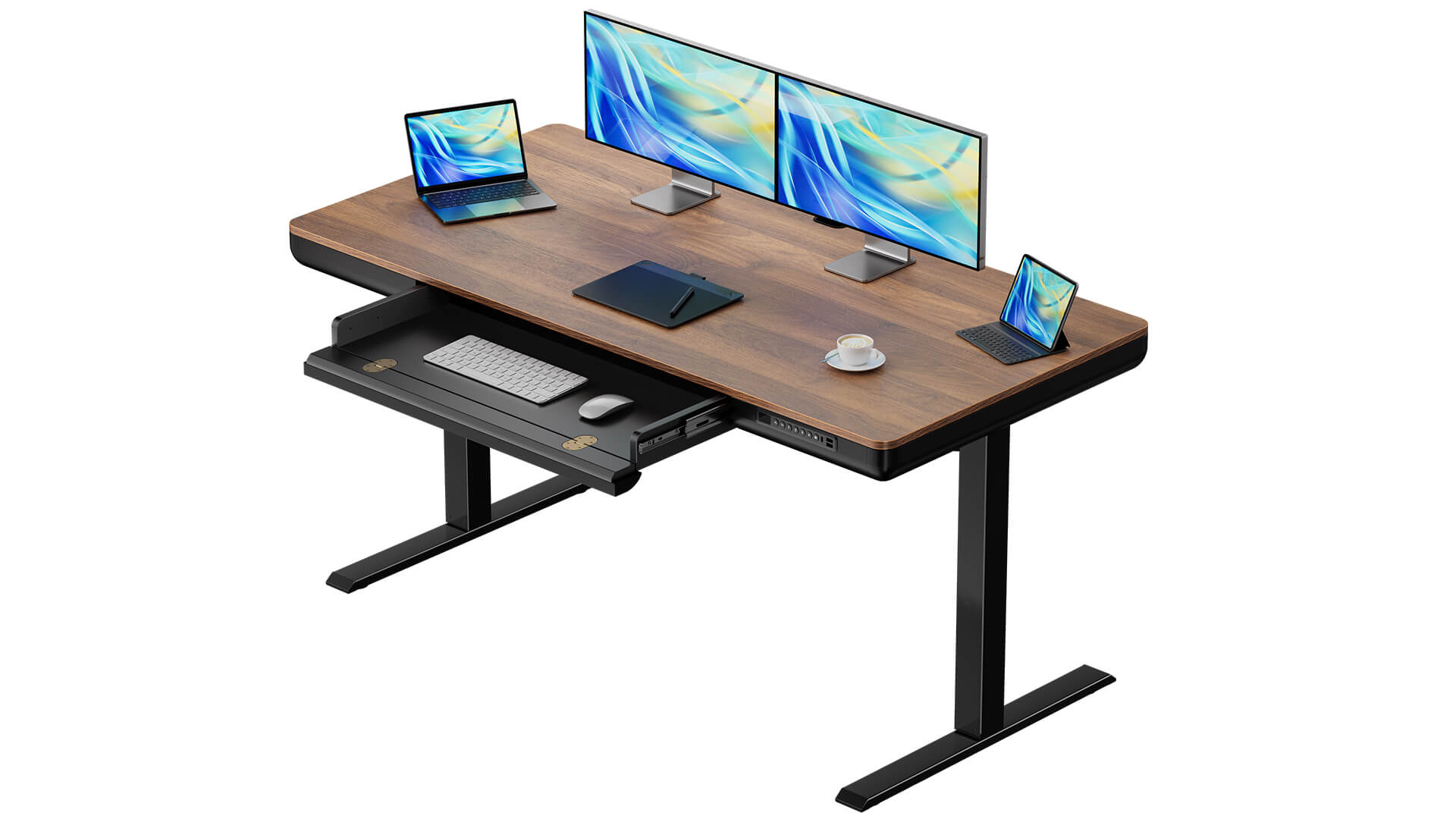 ErgoAV Height-Adjustable Electric Standing Desk with Walnut Desktop
